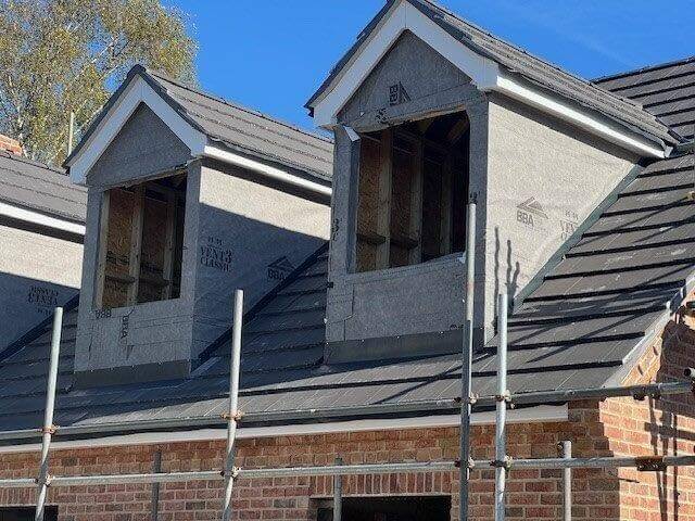We laid the groundwork and progressed the construction up to the timber roof, incorporating the dormers.